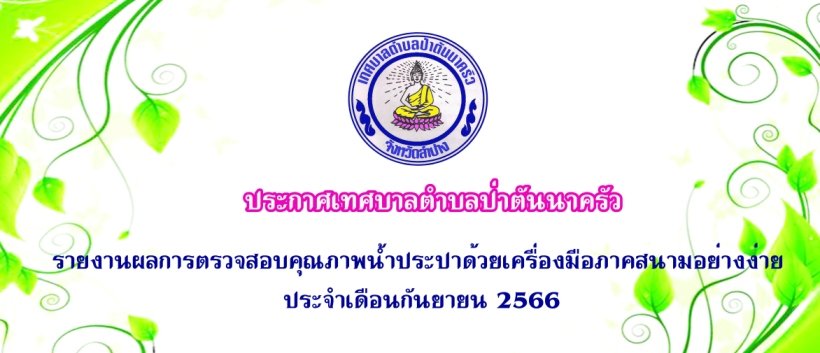 เทศบาลตำบลป่าตันนาครัว ประชาสัมพันธ์รายงานผลการตรวจสอบคุณภาพน้ำประปาด้วยเครื่องมือภาคสนามอย่างง่าย ประจำเดือนกันยายน 2566 ดูรายละเอียดทั้งหมดได้ที่นี้