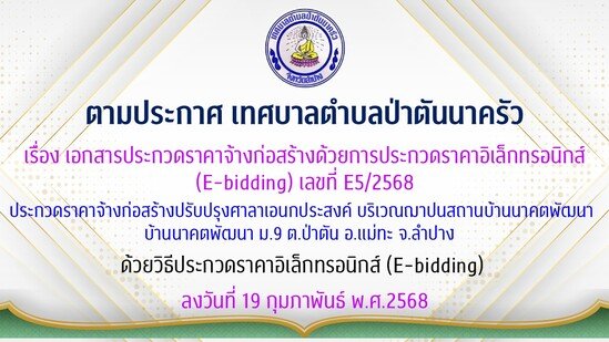 เรื่อง เอกสารประกวดราคาจ้างก่อสร้างด้วยการประกวดราคาอิเล็กทรอนิกส์ (E-bidding) เลขที่ E5/2568