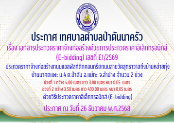 เอกสารประกวดราคาจ้างก่อสร้างด้วยการประกวดราคาอิเล็กทรอนิกส์ (E-bidding) เลขที่ E1/2569