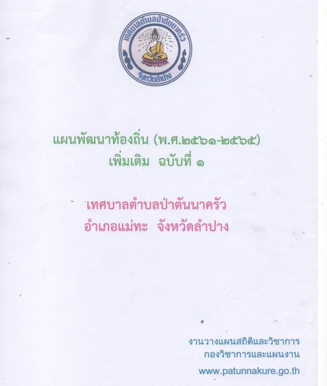 …..เทศบาลตำบลป่าตันนาครัว ประกาศใช้แผนพัฒนาท้องถิ่น (พ.ศ.2561 – 2565) เพิ่มเติม ฉบับที่ 1 โดยผ่านการพิจารณาร่างแผนฯ จากคณะกรรมการพัฒนาเทศบาลตำบลป่าตันนาครัว และ ประชาคมแล้ว เมื่อวันที่ 25 กรกฎาคม 2562 นั้น