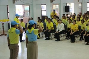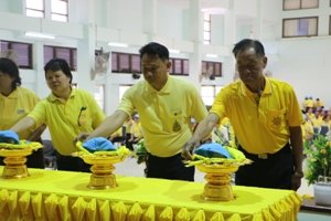 ร่วมบันทึกภาพ พิธีมอบสิ่งของพระราชทานให้แก่ผู้สมัครลงทะเบียนจิตอาสาพระราชทาน ณ หอประชุมอำเภอแม่ทะ
