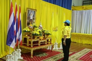 ร่วมบันทึกภาพ พิธีมอบสิ่งของพระราชทานให้แก่ผู้สมัครลงทะเบียนจิตอาสาพระราชทาน ณ หอประชุมอำเภอแม่ทะ
