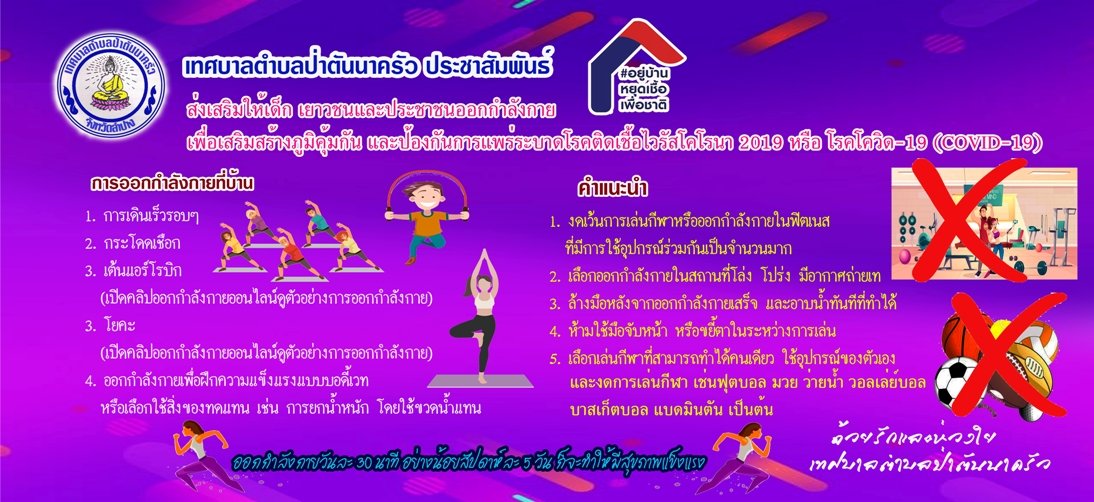 ส่งเสริมให้เด็ก เยาวชนและประชาชนออกกำลังกาย เพื่อเสริมสร้างภูมิคุ้มกัน และป้องกันการแพร่ระบาดโรคติดเชื้อไวรัสโคโรนา 2019 หรือ โรคโควิด-19 (COVID-19) ด้วยการออกกำลังกายที่บ้าน