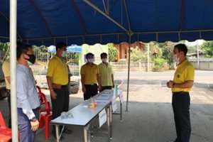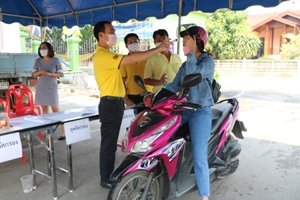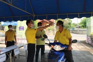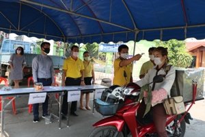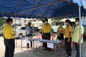 ตั้งจุดตรวจคัดกรอง และวัดอุณหภูมิร่างกาย พนักงานเจ้าหน้าที่เทศบาล และบุคคลที่เข้ามาติดต่อราชการภายในสำนักงานเทศบาลตำบลป่าตันนาครัว