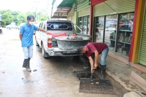ล้างท่อระบายน้ำ ณ บริเวณ ถนนตรงข้าม ธกส.สาขาแม่ทะ เพื่อเป็นการแก้ไขปัญหาท่อระบายน้ำอุดตัน