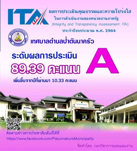 ผลการประเมินคุณธรรมและความโปร่งใสในการดำเนินงานของหน่วยงานภาครัฐ ประจำปีงบประมาณ พ.ศ. 2564 ประเภทองค์กรปกครองส่วนท้องถิ่นพื้นที่ภาค 5 จังหวัดลำปาง เทศบาลตำบลป่าตันนาครัว อำเภอแม่ทะ จังหวัดลำปาง