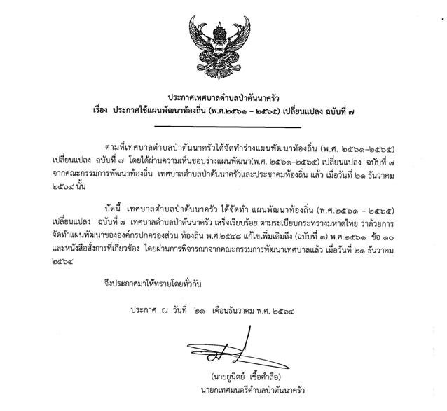 • แผนพัฒนาท้องถิ่น (พ.ศ. 2561-2565) เปลี่ยนแปลงฉบับที่7