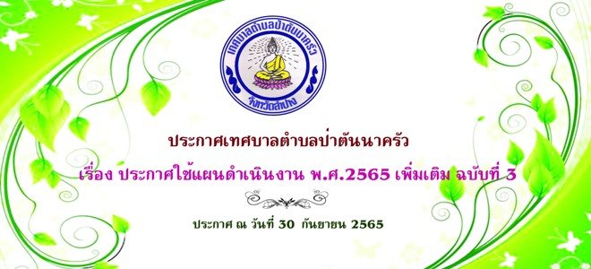 ประกาศเทศบาลตำบลป่าตันนาครัว เรื่อง ประกาศใช้แผนดำเนินงาน พ.ศ.2565 เพิ่มเติม ฉบับที่ 3